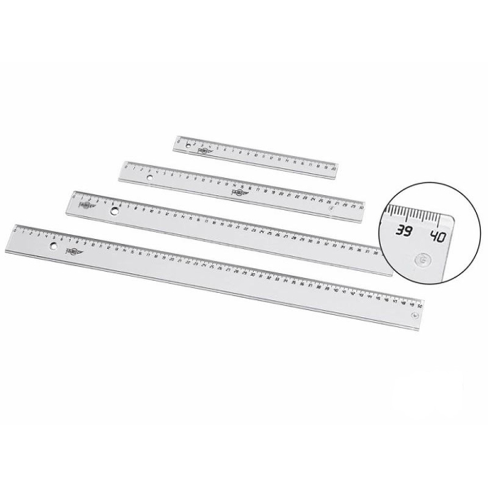 Ref. FA21140 - Faibo Regla Escolar Graduada de 40cm - Biselada y Reborde para Tinta - Transparente.