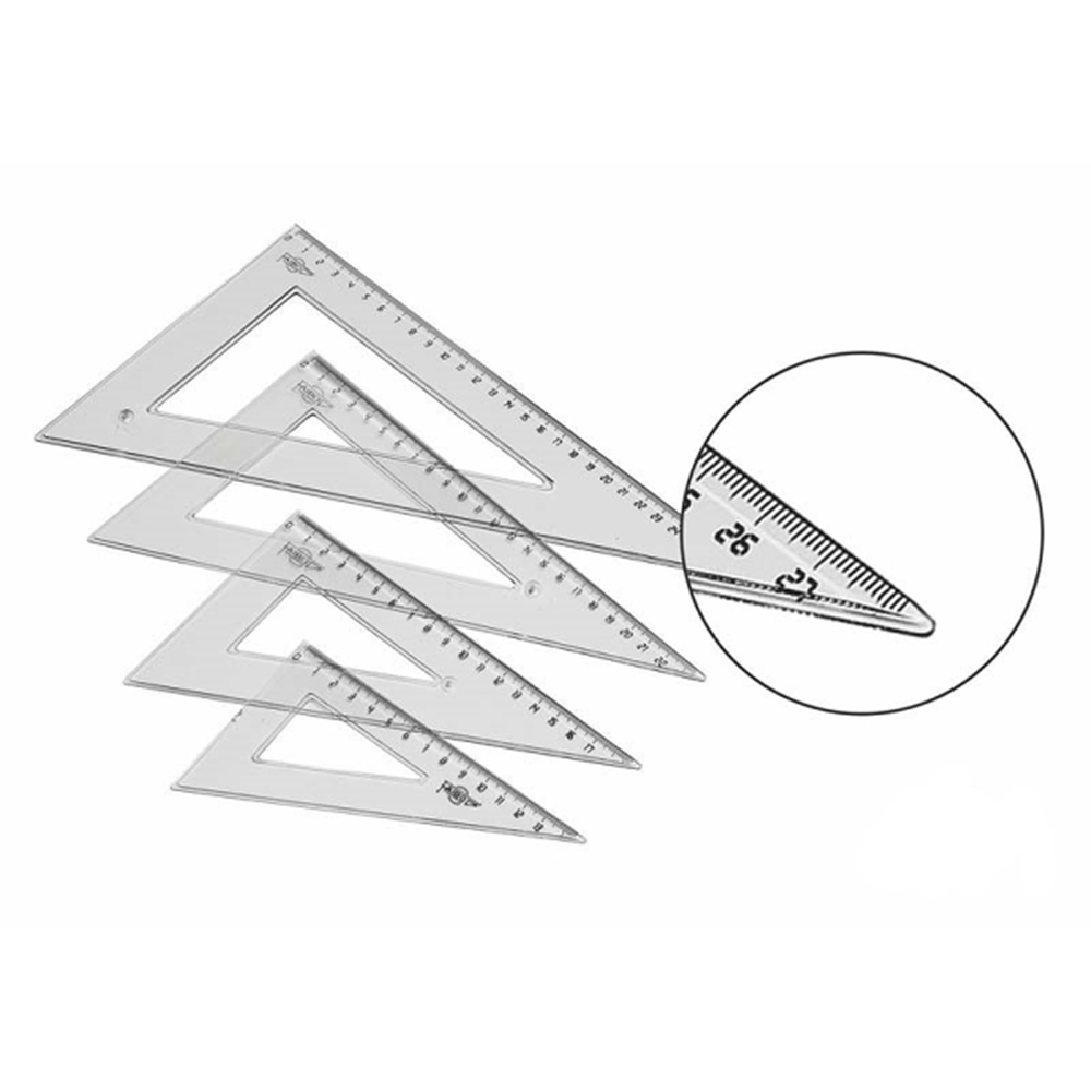 Incluye: Regla de 30cm, Escuadra de 25cm, Cartabon de 25cm y Semicirculo de 9cm