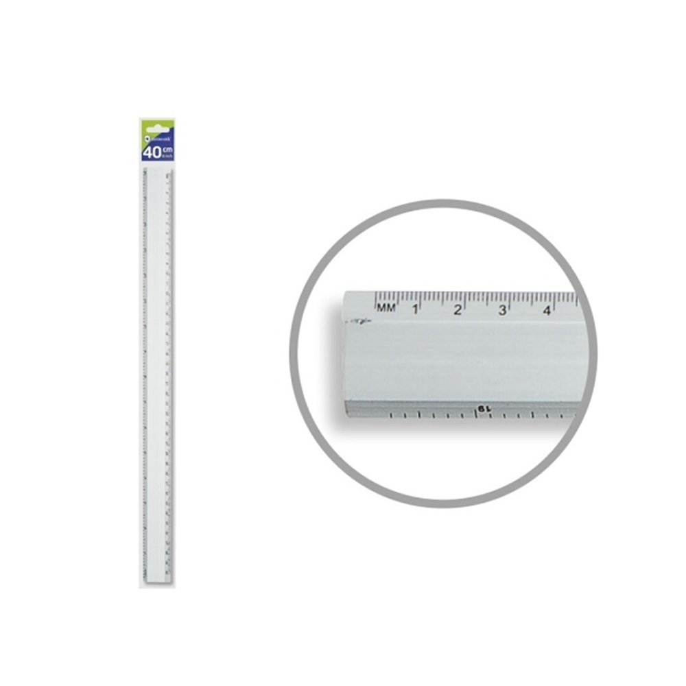Ref. BI314302 - Bismark Regla Milimetrada 40cm - Fabricada en Aluminio - Con Bisel para las Lineas a Tinta - Color Aluminio.