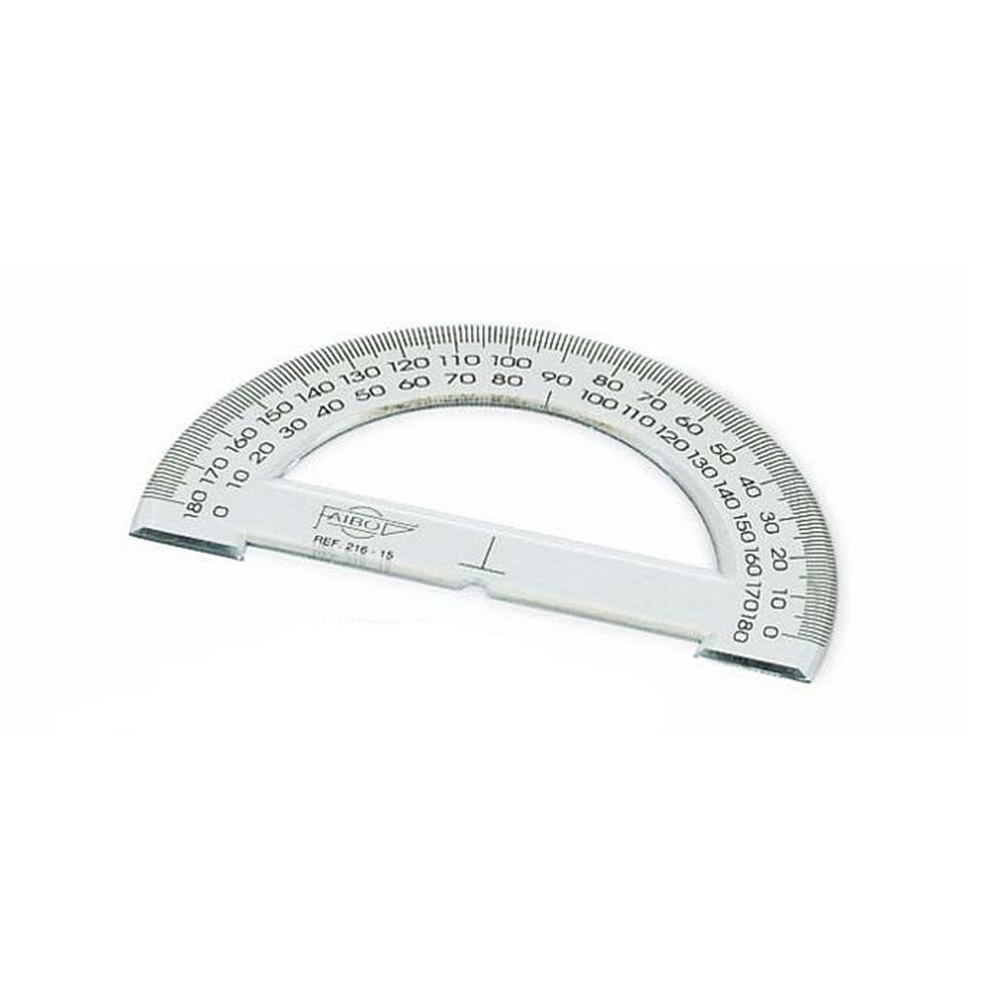 Ref. MC216 - Faibo Semicirculo Escolar Graduado de 15cm - Biselado y Reborde para Tinta - Transparente.