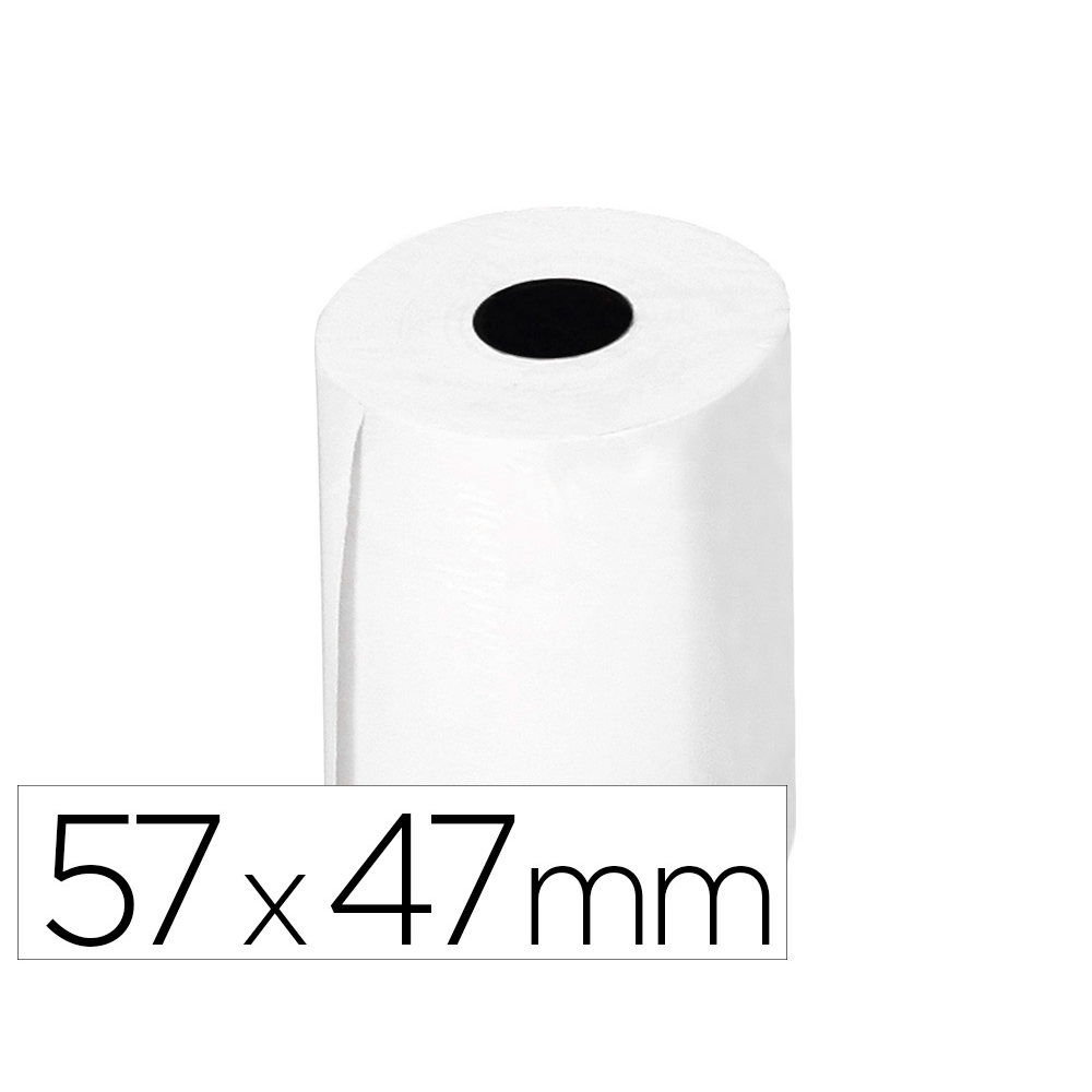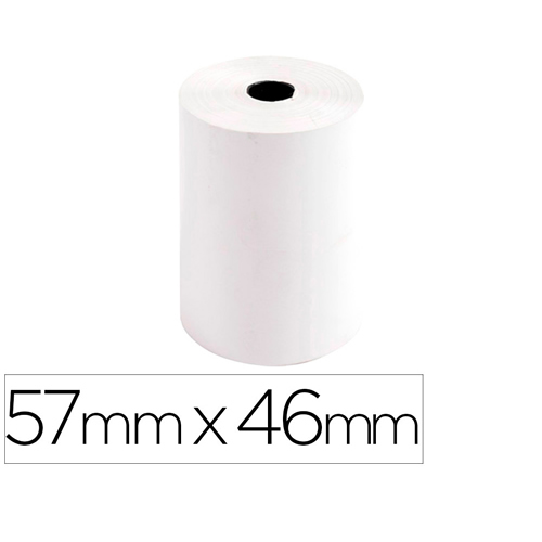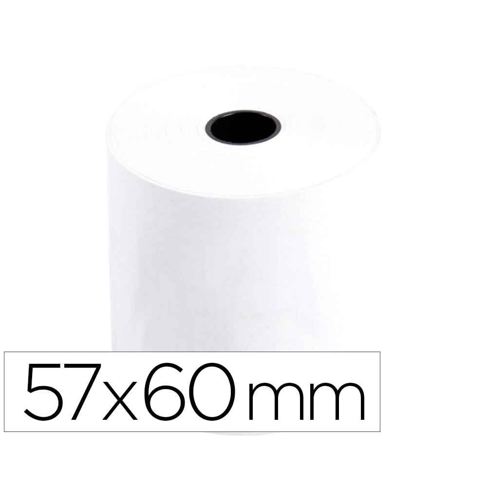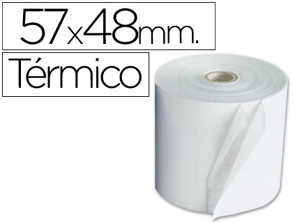 Rollo de papel térmico blanco tamaño 57 x 55 x 12 mm (ancho del tique x diámetro del rollo x diámetro del mandril). Gramaje: 55 g / m².