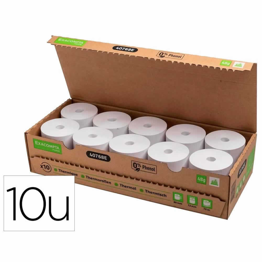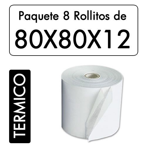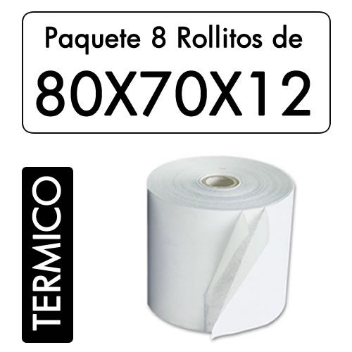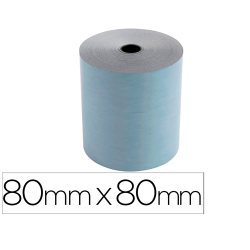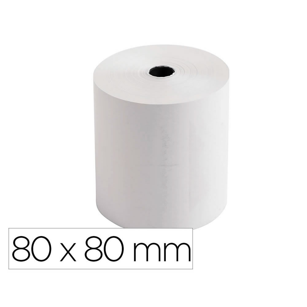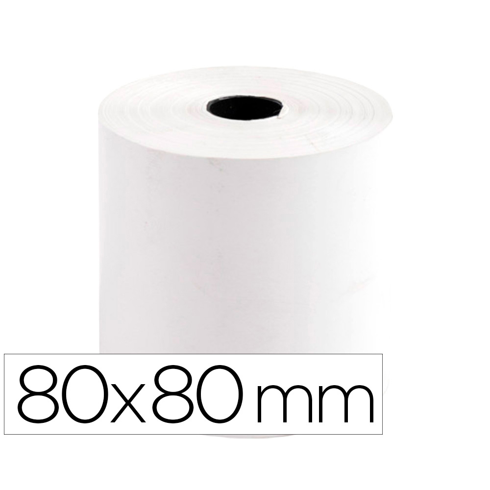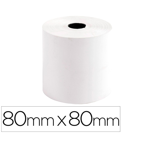 Rollo de papel térmico blanco tamaño 80 x 80 x 12 mm (ancho del tique x diámetro del rollo x diámetro del mandril). Gramaje: 55 g / m².