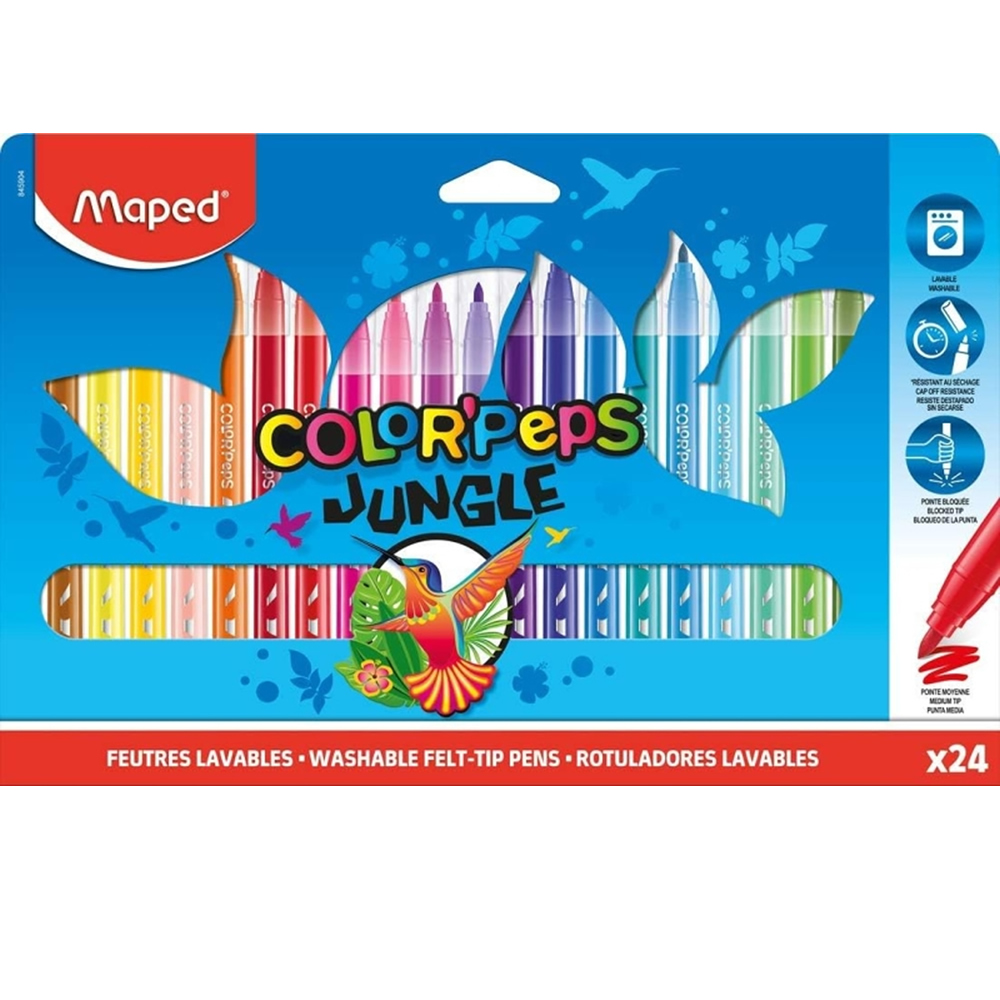 Ref. AR001003N - Alpino Pack de 24 Rotuladores Escolares - Punta Fina de 3mm - Superlavables y Brillantes - Desarrolla la Creatividad - Colores Surtidos.