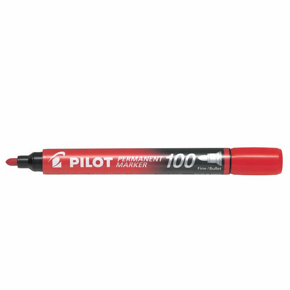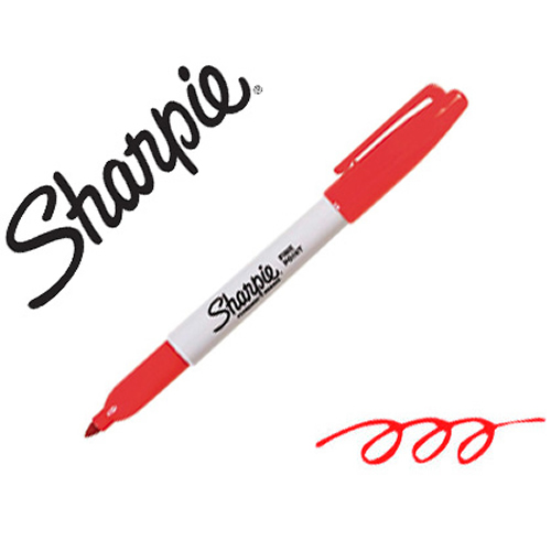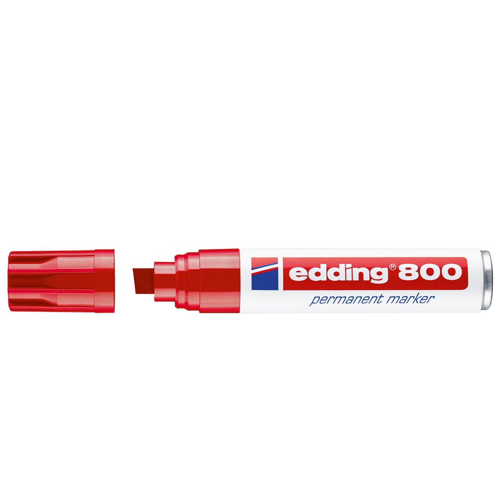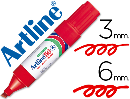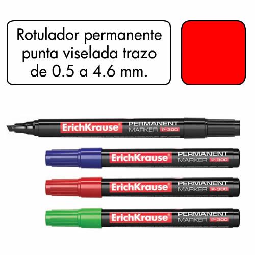 Rotulador permanente punta biselada color rojo. Ancho de trazo de 0.5 a 4.6 mm. Â Apto para casi todas las superficies: papel, carton, vidrio, plastico, porcelana, ceramica, madera, etc. Tinta resiste...