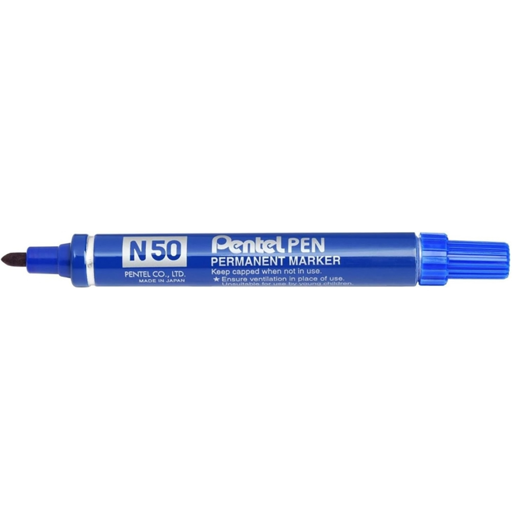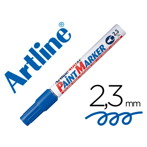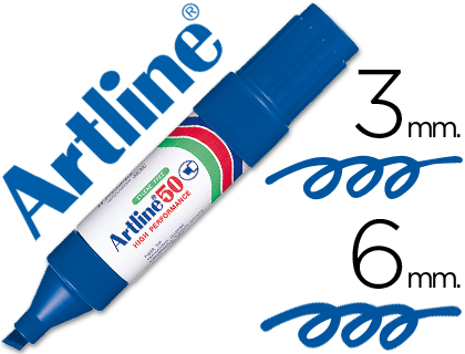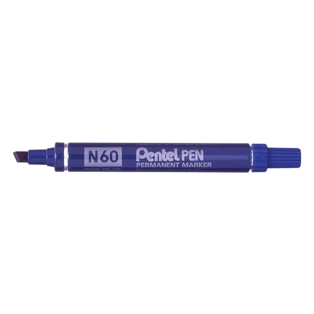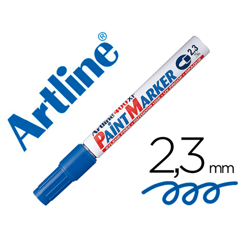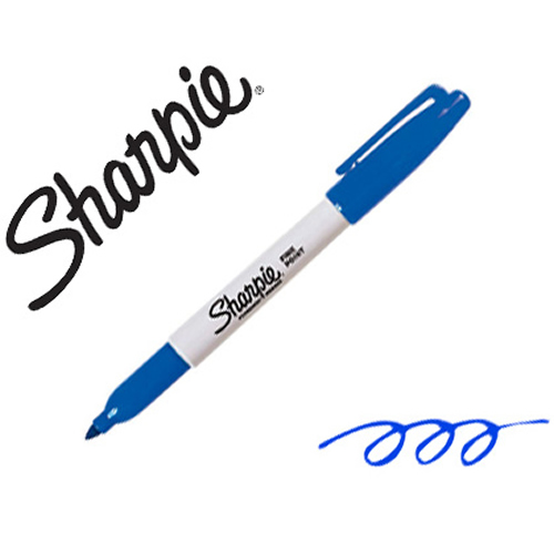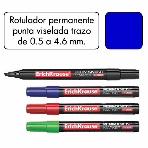 Rotulador permanente punta biselada color azul. Ancho de trazo de 0.5 a 4.6 mm. Â Apto para casi todas las superficies: papel, carton, vidrio, plastico, porcelana, ceramica, madera, etc. Tinta resiste...