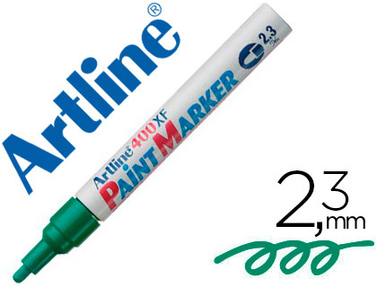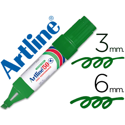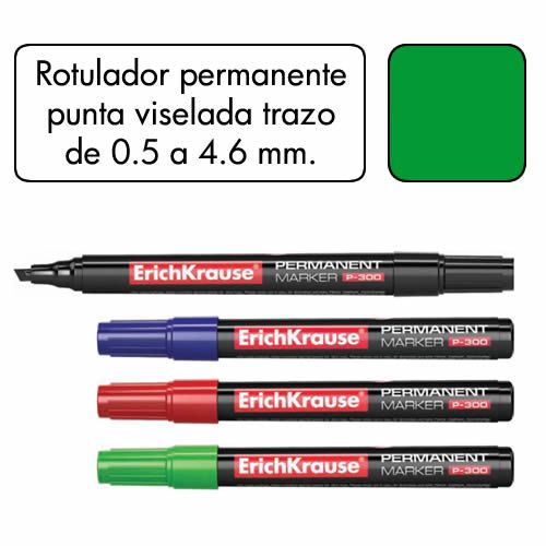 Rotulador permanente punta biselada color verde. Ancho de trazo de 0.5 a 4.6 mm. Â Apto para casi todas las superficies: papel, carton, vidrio, plastico, porcelana, ceramica, madera, etc. Tinta resist...