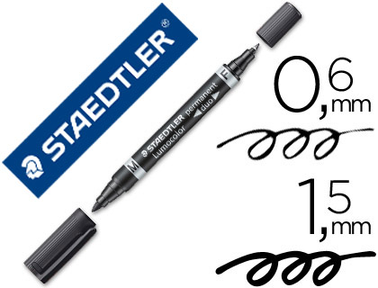 Ref. 348-9 BKD - Staedtler Lumocolor 358 Rotulador Permanente de Doble Punta - Trazos de 0.6mm y 1.5mm Aprox - Secado Rapido - Color Negro.