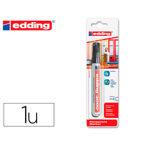 Ref. 300-01 - Edding 300 Rotulador Permanente - Punta Redonda - Trazo entre 1.5 y 3 mm. - Tinta Casi Inodora - Capuchon con Clip - Secado Rapido - Color Negro.