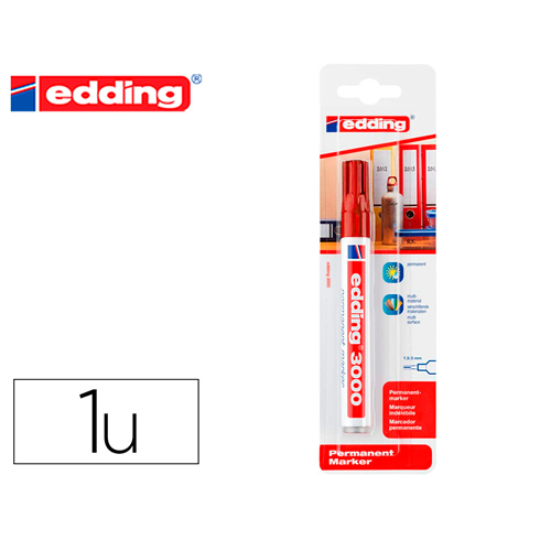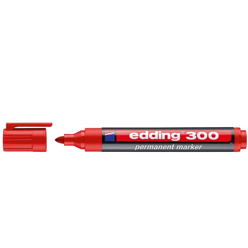 Ref. 300-02 - Edding 300 Rotulador Permanente - Punta Redonda - Trazo entre 1.5 y 3 mm. - Tinta Casi Inodora - Capuchon con Clip - Secado Rapido - Color Rojo.