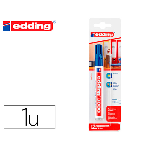 Ref. 300-03 - Edding 300 Rotulador Permanente - Punta Redonda - Trazo entre 1.5 y 3 mm. - Tinta Casi Inodora - Capuchon con Clip - Secado Rapido - Color Azul.