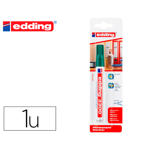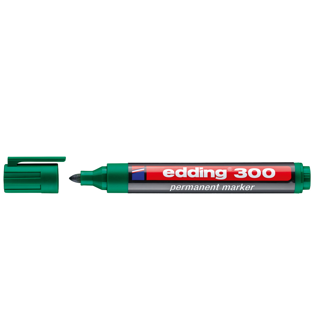 Ref. 300-04 - Edding 300 Rotulador Permanente - Punta Redonda - Trazo entre 1.5 y 3 mm. - Tinta Casi Inodora - Capuchon con Clip - Secado Rapido - Color Verde.