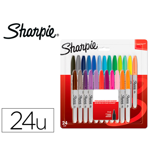Expositor surtido de 21 marcadores permanentes con punta redonda de 3 mm.