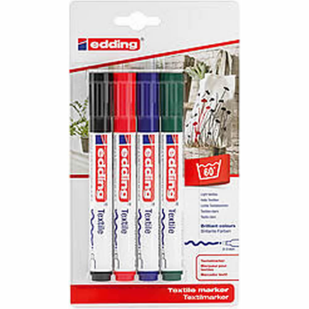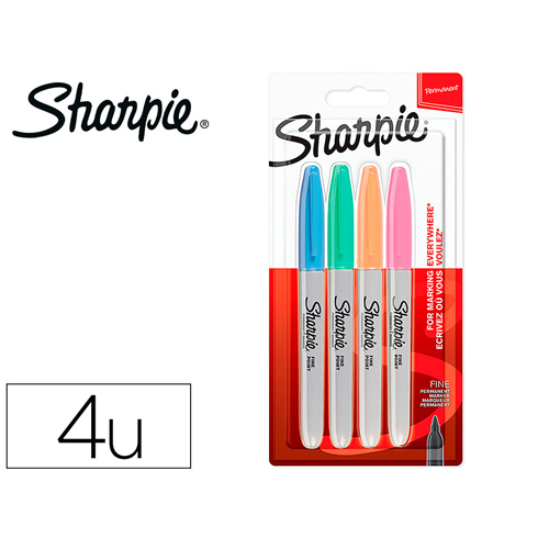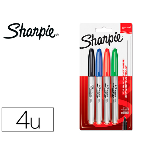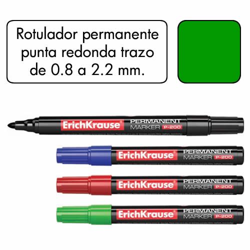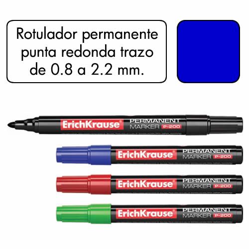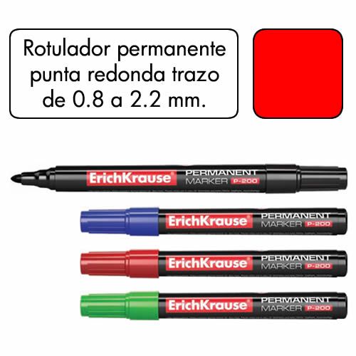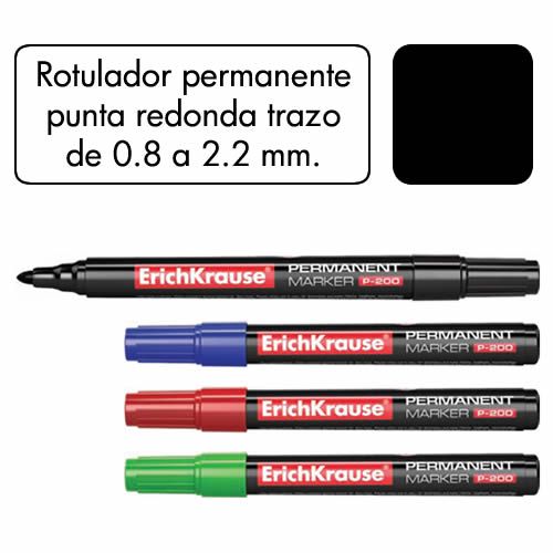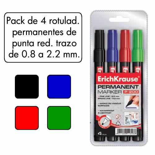Estuche de 4 rotuladores permanentes punta redonda surtidos en 4 colores, negro, azul, rojo y verde. Ancho de trazo de 0.8 a 2.2 mm. Â Apto para casi todas las superficies: papel, carton, vidrio, plas...