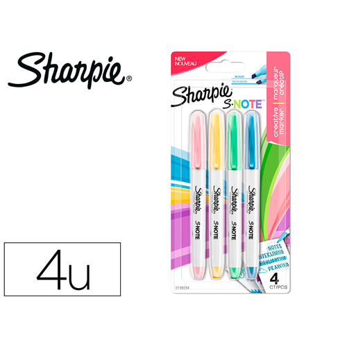 Este blíster contiene cuatro marcadores permanentes en negro, azul, rojo y verde diseñados para escribir sobre todo tipo de superficies. Selecciona el grosor que desees entre 3,7 y 5,5 mm con su punta...
