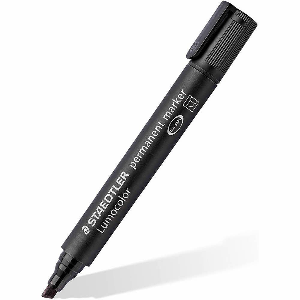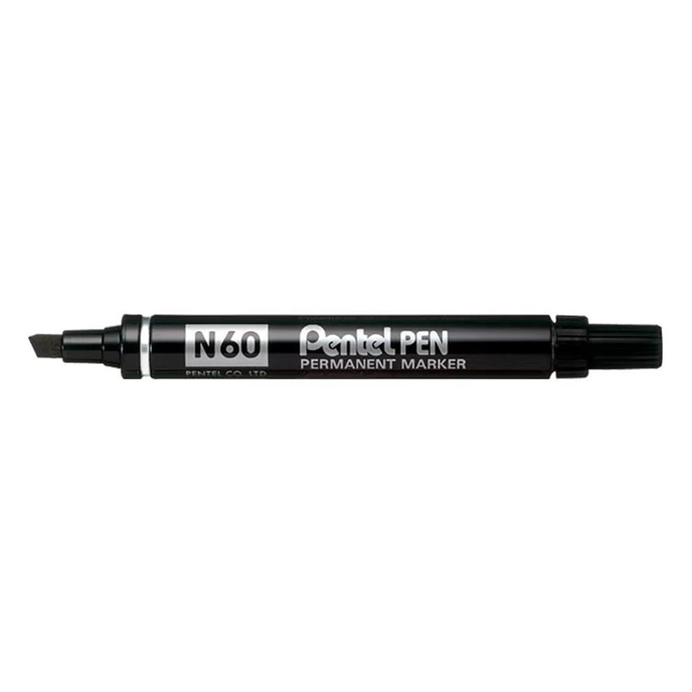 Rotulador permanente punta biselada color negro. Ancho de trazo de 0.5 a 4.6 mm. Apto para casi todas las superficies: papel, carton, vidrio, plastico, porcelana, ceramica, madera, etc. Tinta resiste...