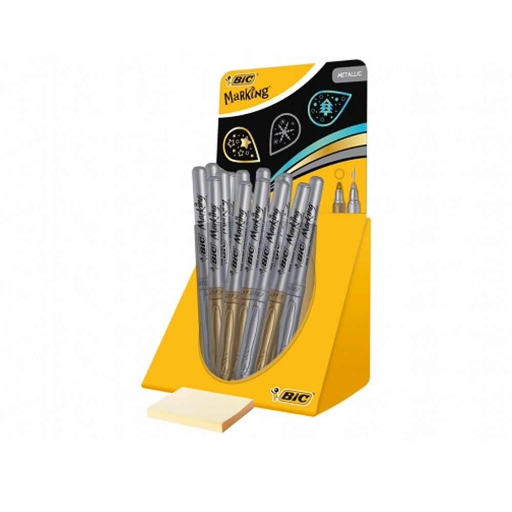 Ref. 900341 - Bic Marking Metallic Expositor de 24 Rotuladores Permanentes - Punta 1.8mm - Trazo 0.8mm - Color Oro y Plata.