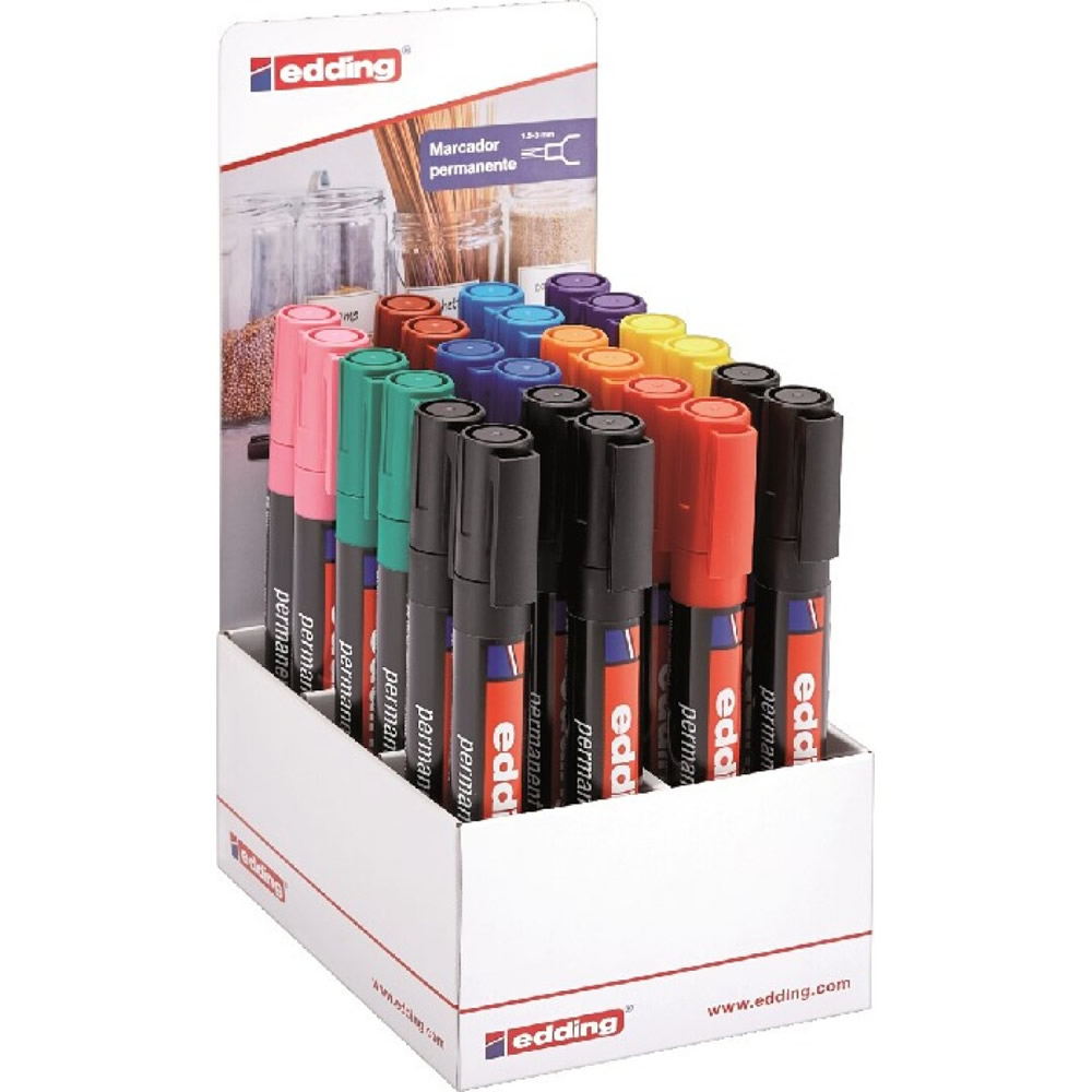 Ref. 52200-1 - Edding 300 Expositor de 24 Rotuladores Permanentes - Punta Redonda - Trazo entre 1.5 y 3mm - Tinta Casi Inodora - Capuchon con Clip - Secado Rapido - Colores Surtidos.