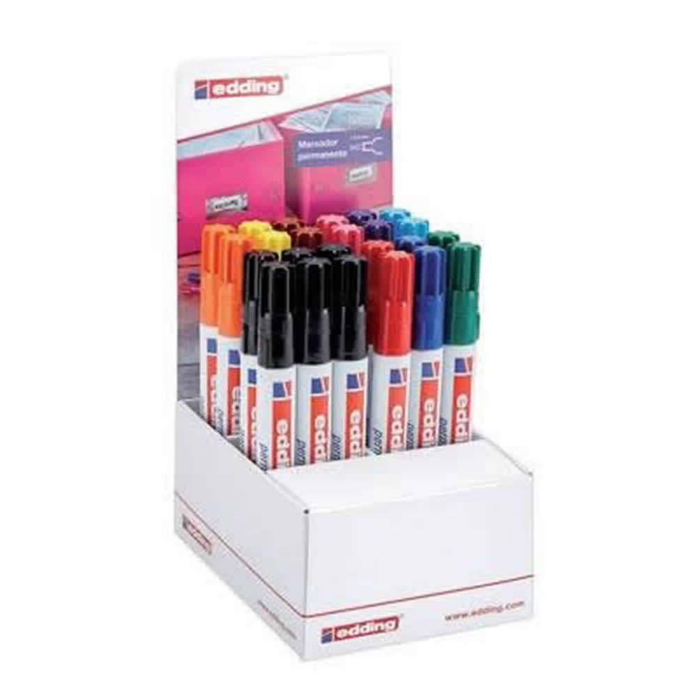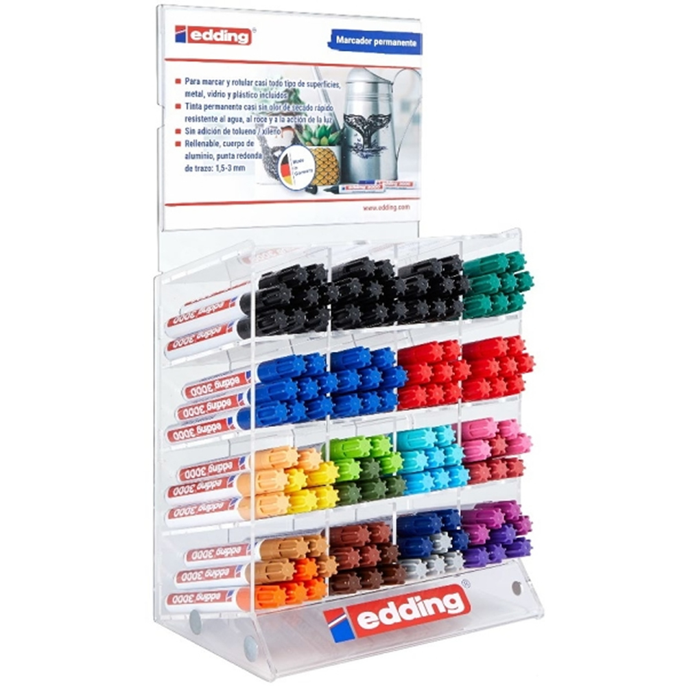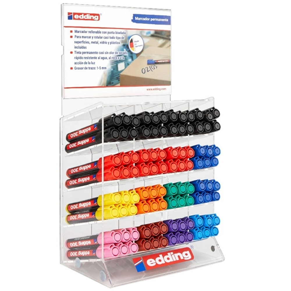 Ref. 4-70300 - Edding 300 Expositor de 96 Rotuladores Permanentes - Punta Redonda - Trazo entre 1.5 y 3mm - Tinta Casi Inodora - Capuchon con Clip - Secado Rapido - Colores Surtidos.