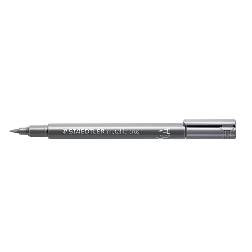 Ref. 8321-81 - Staedtler Metallic Brush Rotulador Punta Pincel - Trazo 1 - 6mm Aprox - Tinta Base de Agua - Color Plata.