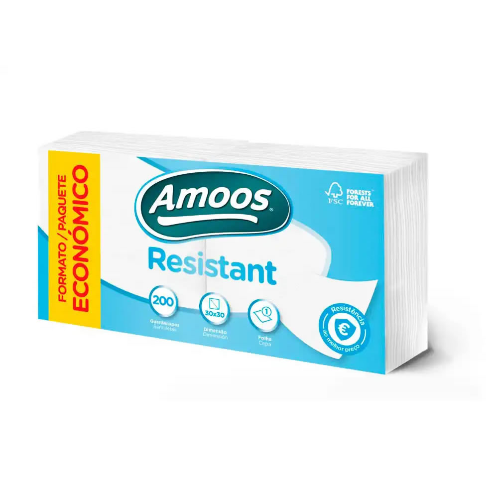 Ref. CS173754 - Servilleta Amoos Resistant 1 Capa Color Blanco 30X30 Cm Paquete De 200 Unidades.