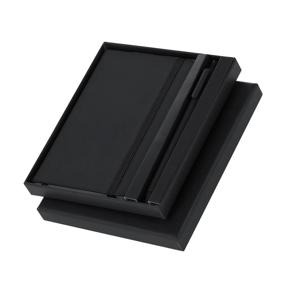 Set marden color negro. Composicion: Polipiel. Codigo de impresión: D(1),B(1), T. Medidas: 23,7 x 2,1 x 19,2 cm. Bloc 100 Hojas. Set de bloc de notas con tapas de suave tacto acabadas en polipiel y bo...