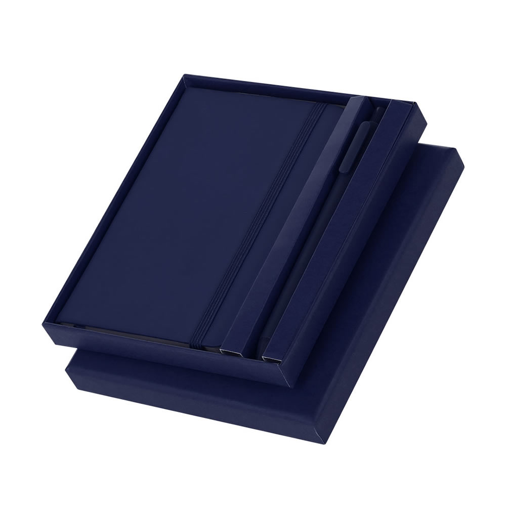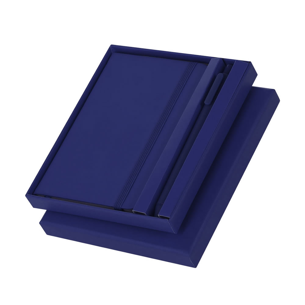 Set marden color azul. Composicion: Polipiel. Codigo de impresión: D(1),B(1), T. Medidas: 23,7 x 2,1 x 19,2 cm. Bloc 100 Hojas. Set de bloc de notas con tapas de suave tacto acabadas en polipiel y bol...