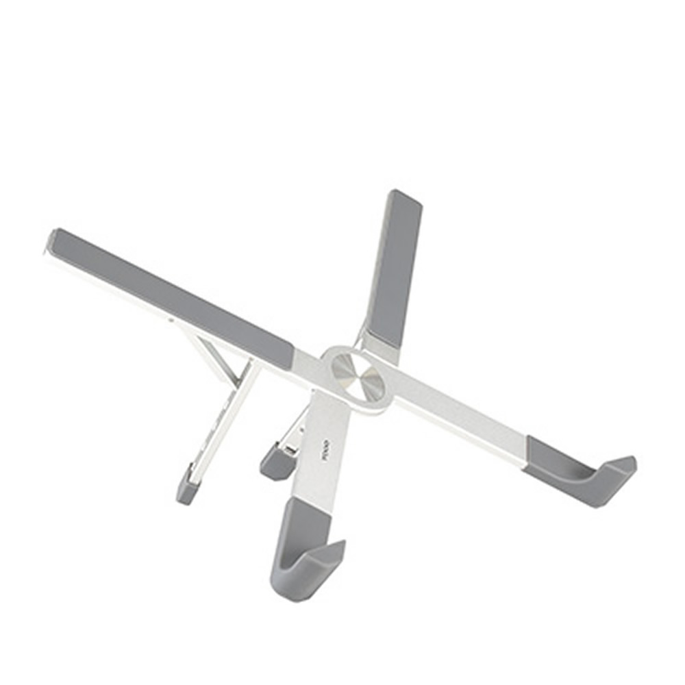 Soporte plegable para portátil. Fabricado en resistente ABS con protecciones antideslizantes en TPR para un firme ajuste al dispositivo. Regulable en altura, con plegado de tamaño compacto y presentad...