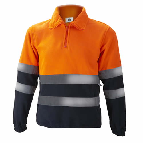 Forro Polar Combi Media Cremallera Color Marino / Naranja Talla 3XL. Cuello cisne cremallera o cremallera entera. 2 bolsillos oblicuos en cintura con cierre cremallera. Puños con goma. Cordón con tira...