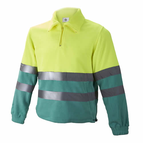 Ref. X1091/445-5XL - Forro Polar Combi Media Cremallera Color Verde Medio / Amarillo Talla 5XL.
