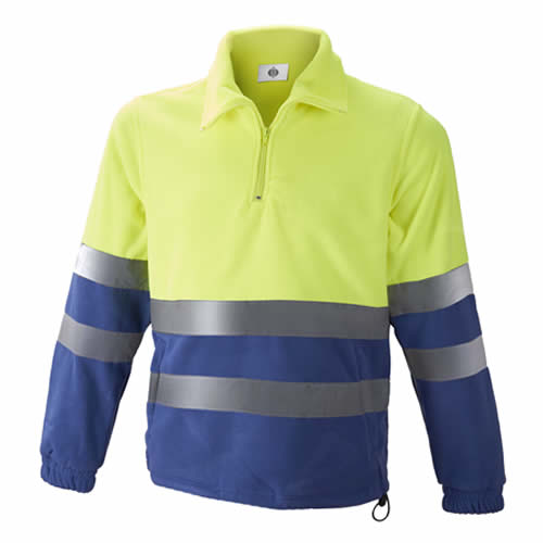 Forro Polar Combi Media Cremallera Color Azul / Amarillo Talla 5XL. Cuello cisne cremallera o cremallera entera. 2 bolsillos oblicuos en cintura con cierre cremallera. Puños con goma. Cordón con tirad...