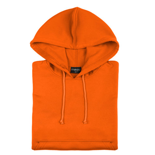 Sudadera tecnica adulto Theon 100% poliester 265g / m2. Color naranja. Talla Medium. Codigo de impresion E(6), N(8), O, P, R. Sudadera técnica para adulto unisex. Con capucha, cintas de ajuste, bolsill...