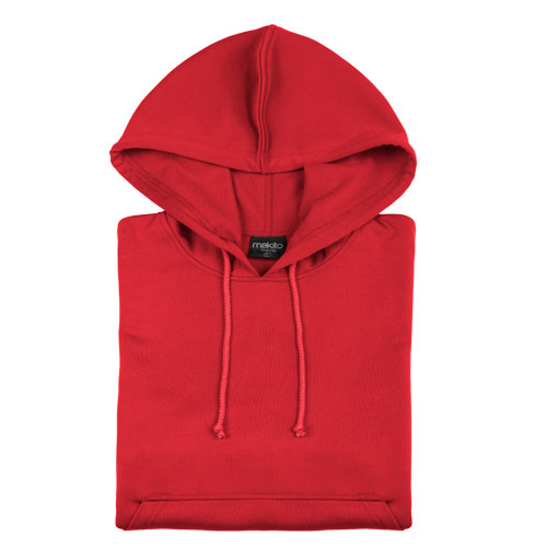 Sudadera tecnica adulto Theon 100% poliester 265g / m2. Color rojo. Talla Small. Codigo de impresion E(6), N(8), O, P, R. Sudadera técnica para adulto unisex. Con capucha, cintas de ajuste, bolsillo fr...