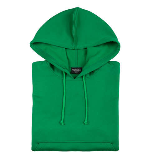 Sudadera tecnica adulto Theon 100% poliester 265g / m2. Color verde. Talla Medium. Codigo de impresion E(6), N(8), O, P, R. Sudadera técnica para adulto unisex. Con capucha, cintas de ajuste, bolsillo ...