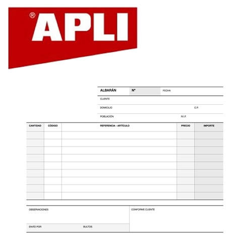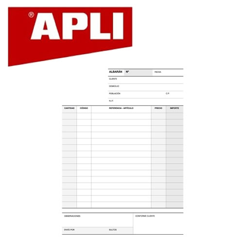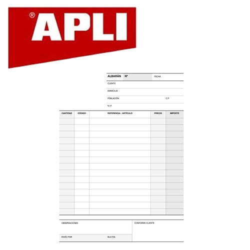 Ref. 12687 - Apli Talonario Albaran 1 / 4 Apaisado Triplicado A-121 - 210x148mm - Copias Autocopiativas - Numeracion Secuencial - Papel Autocopiativo Blanco Color Blanco.