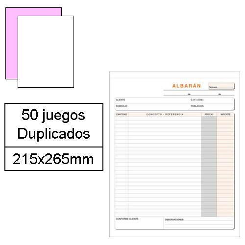 Talonario de albaranes 1 / 4 vertical con duplicado modelo A-120. Gramaje: 60 g / m².