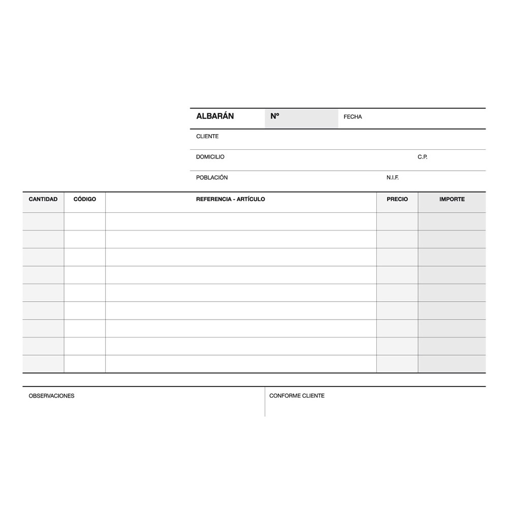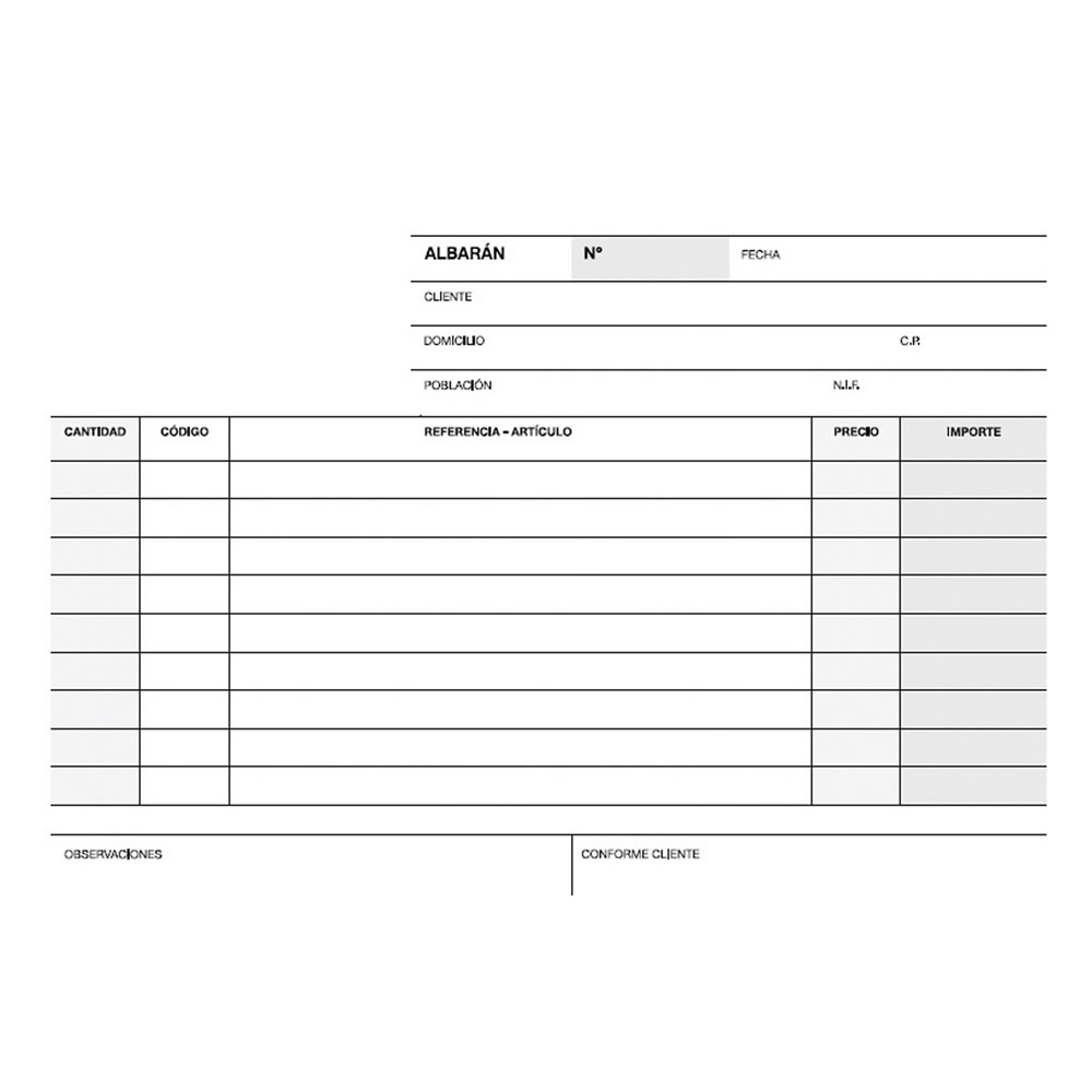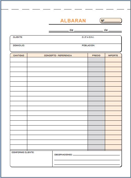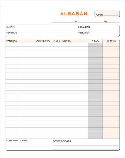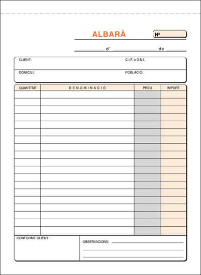 Talonario de albaranes 1 / 4 vertical en papel litos modelo A-118. Gramaje: 60 g / m².